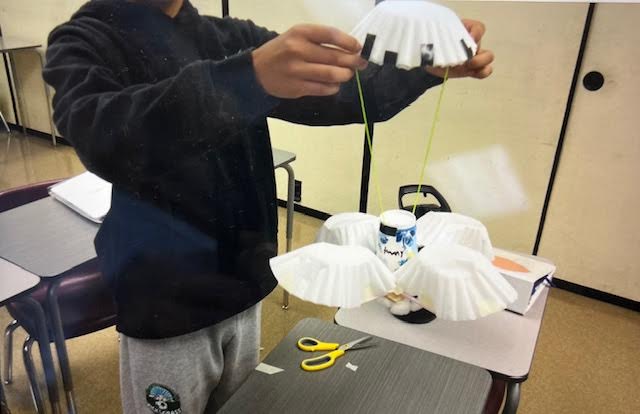 Mr. Templer's Science classes are designing a Mars Lander with Big Brains and limited tape! The first two pics are one lander in two stages of design. |