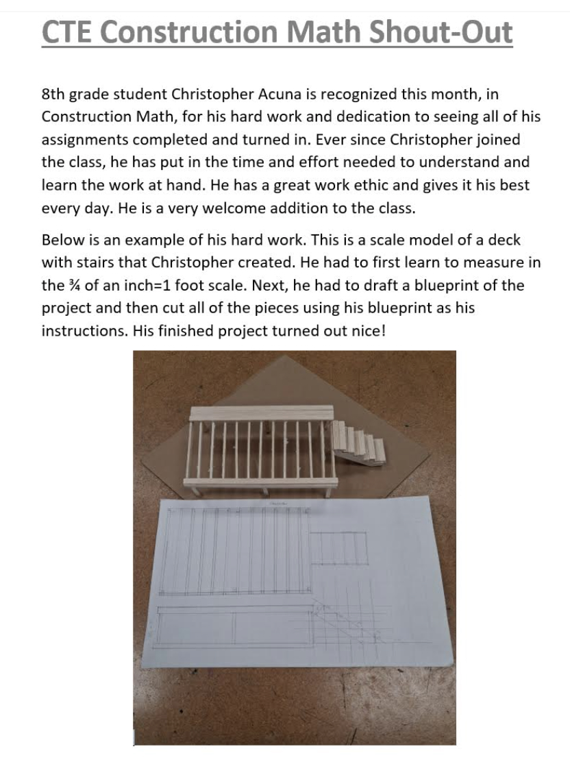 8th Grade: Alan Hernandez Nieto, Andres Carrada-Morelia, Eli Jones, Hunter Dewald, Jaycee Eddy-Hathaway, Jonathan Kelley, Juan Quintero-Arellano, Katie Mondragon, Natalie Bojorquez, Noah Longenbaugh, Nolan Roberts, Peyton Tobias, Santiago Garcia, and Zoey Shope..